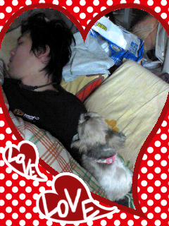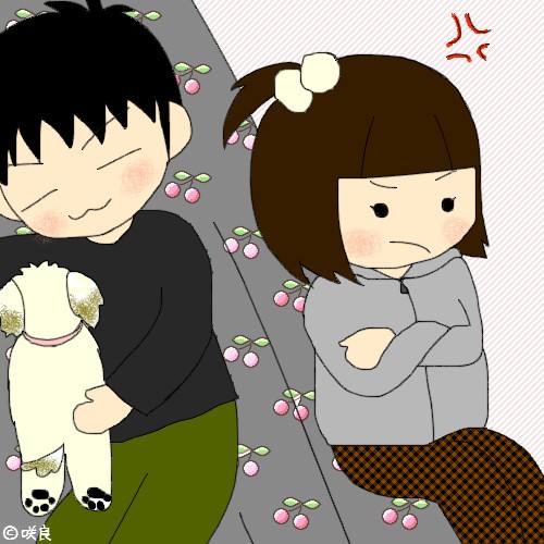 咲が怒ってそっぽ向いて、ちまはぽんずと寝てるの。