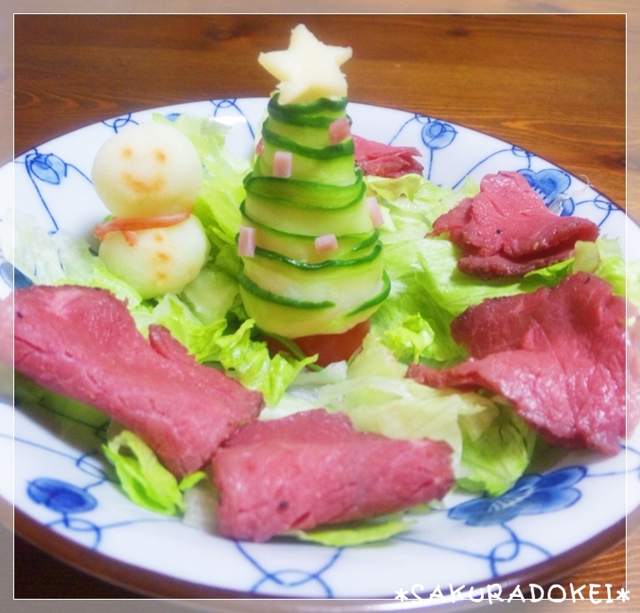 サラダはあたしの伯母さんからローストビーフが送られてきたのでそれを利用し、