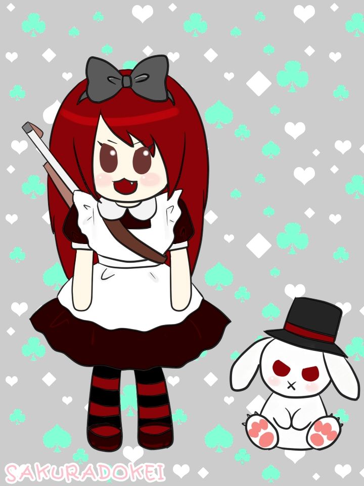 『黒を基調としたダークなアリスとたれ耳うさぎ』