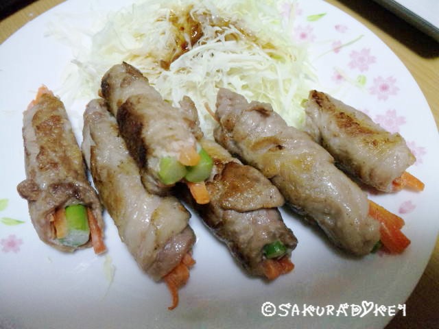 アスパラと人参巻いてます(*´∀`*)
