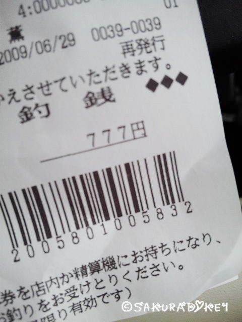パっとレシート見たら777やった(´艸`o)゚.+: